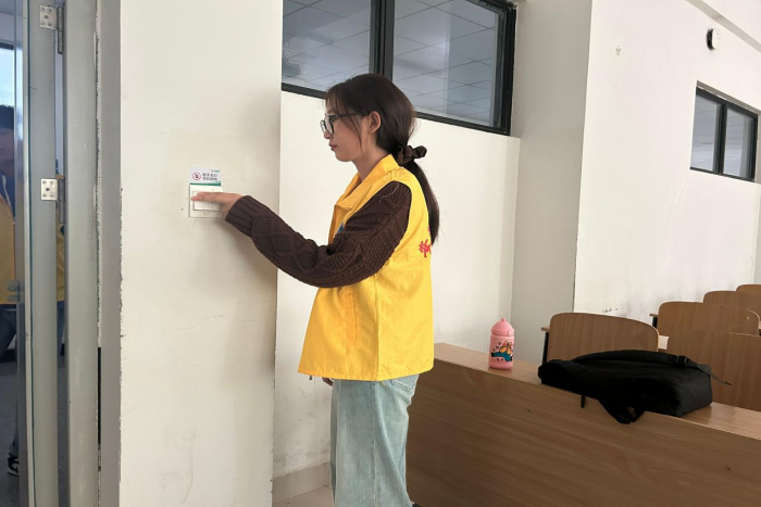 此次活动的重点是对教学楼的消防用具及其电力设施展开细致全面的检查。在对消防用具的检查中,同学们发现了其中存在的问题,例如,部分灭火器的压力不足,部分消防栓的保养不当且存在锈蚀等情况。这些问题的发现和及时上报为教学楼的安全提供了一份有力的保障。通过开展相关实践活动,同学们将奉献精神内化于心,外化于行,也呼吁大家要养成节约用电的好习惯,将用电量控制在合理的范围内。