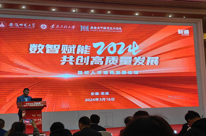 为进一步推动学科专业建设,促进商科专业数智化转型,3月16日,财经学院会计学教研室主任张淑英和财务管理教研室主任钟德仁两位老师参加了在芜湖举办的“数智赋能,2024共创高质量发展院校人才培养发展论坛”。此次会议由安徽师范大学和安徽工程大学主办、DUOBAO.COM联合主办,新道科技有限公司承办。会议邀请安徽师范大学副校长熊宇杰、安徽工程大学副校长周虹屏、安徽商贸职业技术学院党委副书记王炜等以及新道科技的行业专家进行专题的分享。