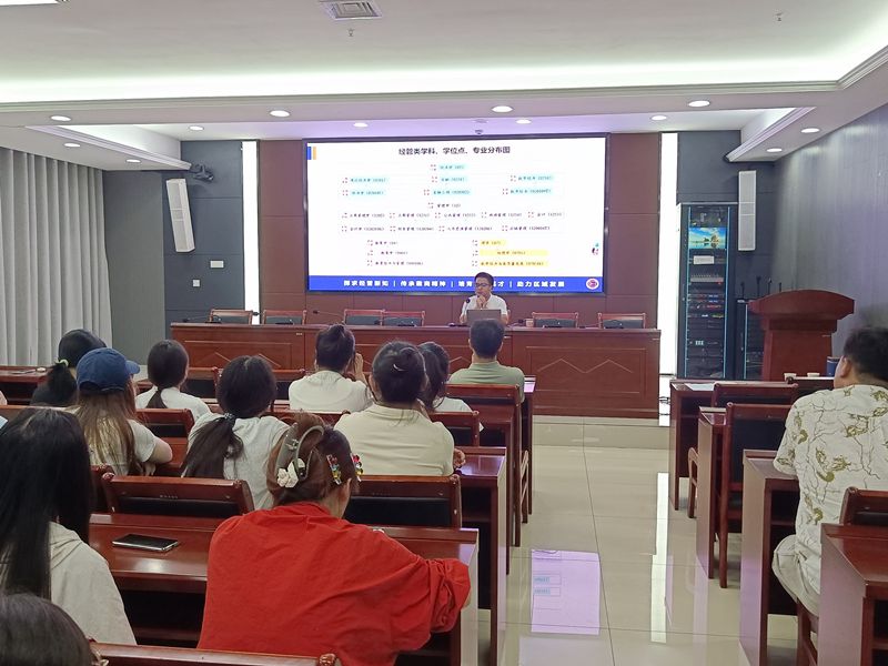 9月10日下午,财经学院组织召开考研备考指导会,邀请相关专家为2026届毕业生进行指导,帮助学生明确考研方向、掌握院校招生动态、提升备考效率。学院院长郝世绵、副院长李宝礼及近150名有考研意愿的学生参会。
