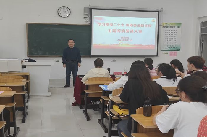 为深入学习贯彻党的二十大精神,凝聚奋进新时代、建功新征程的强大力量,4月19日下午,财经学院在致知楼B105教室举办了“学习贯彻二十大 砥砺奋进新征程”主题阅读朗诵大赛。学院5位辅导员老师担任比赛评委。学院党委副书记、纪委书记耿广汉出席比赛。