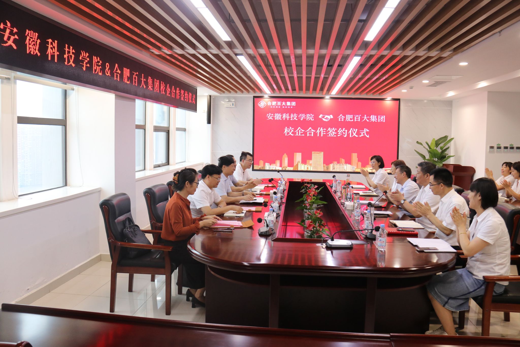 合肥百大集团副总经理、总会计师刘华生,校党委委员、党委宣传部部长何永勇,党委(校长)办公室主任卢星辰,教务处处长赵伟峰等参加签约仪式。(特约通讯员:肖秀华 摄影:合肥百大集团 审核:郝世绵)