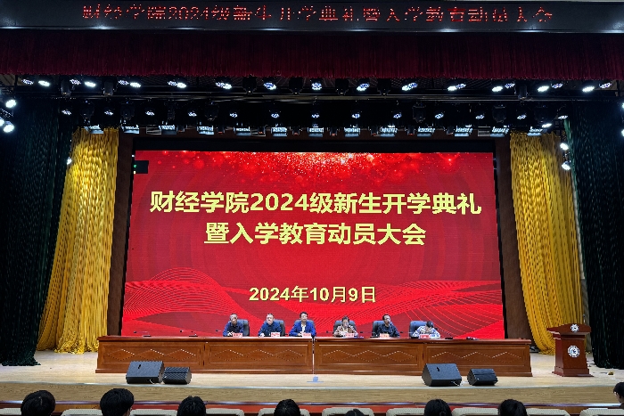 10月9日晚,财经学院2024级新生开学典礼暨入学教育动员大会在龙湖校区综合信息中心二楼报告厅举行。学院党政班子、教研室主任、教师代表、全体辅导员及2024级新生参加会议。开学典礼由学院党委副书记、纪委书记耿广汉主持。