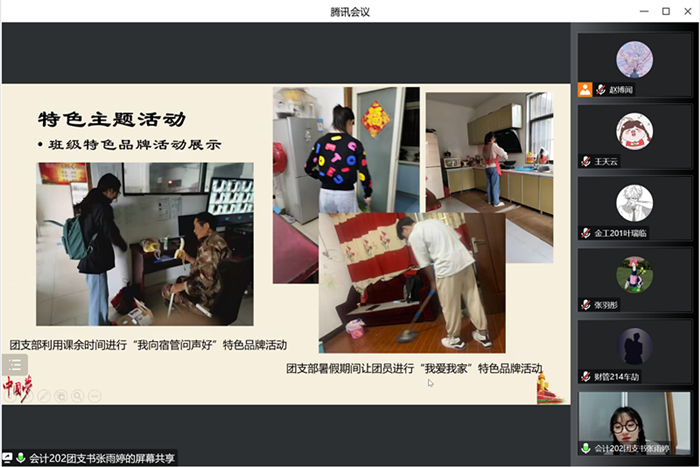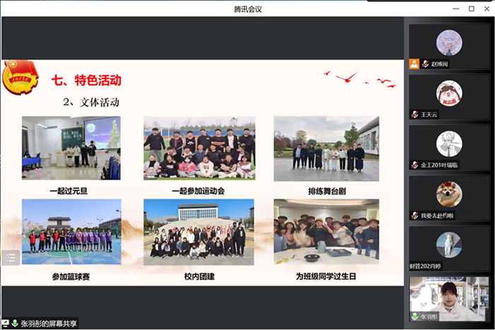 此次述职评议会通过腾讯会议开展。会上,各班团支部书记以PPT展演的形式从班子建设、团员管理、组织生活、制度落实、作用发挥、支部特色工作等方面展开,汇报了在过去一年支部的工作开展情况、存在不足及今后努力方向。