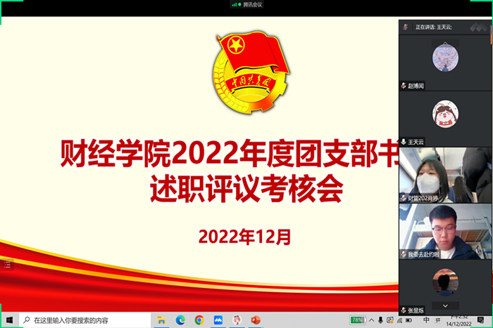 为进一步加强基层团组织建设和团干部队伍建设,保持和增强团组织的政治性、先进性、群众性,12月14日,财经学院开展了2022年团支部书记述职评议和基层团支部“对标定级”工作。