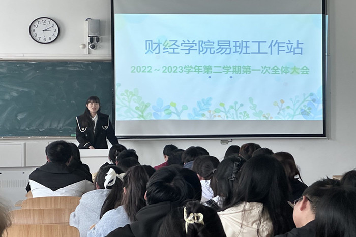 为做好学期初易班平台建设重点工作部署,提升网络育人效果,3月8日,财经学院在致知楼A108教室召开新学期易班工作会议。学院纪委副书记、团委书记薛枫,易班工作站全体成员、22级各班易班班长参加会议。会议由易班指导老师王天云主持。