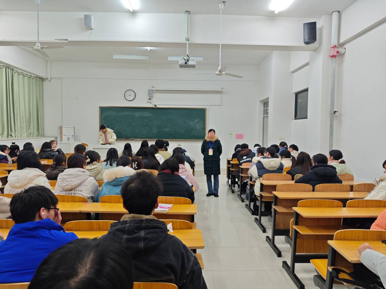 大部分学生均能够严格遵守校规校纪,不迟到、不旷课,按时到教室上课并参加晚自习。课堂上,同学们精神饱满、主动互动、氛围活跃。晚自习时,2023级各班级有效利用手机袋,如实如数上交手机,温习课堂知识,学习氛围浓厚。党委副书记耿广汉鼓励同学们珍惜大学时光,学会积极主动,努力提升自我,不负时光、不负韶华。