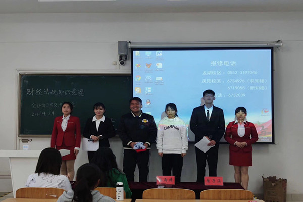 本次比赛由财经学院英语学习与交流协会会长占丽、大学生理财协会会长王娜、大学生电子商务协会会长姚雨晴、大学生创业协会会长陆子涵担任评委。参赛选手先参加财经法规知识笔试环节,以考察参赛者对财经法规知识的掌握程度。决赛有财务计算和会计词汇竞猜两个环节,通过初赛的选手自由组队参加决赛,财务计算环节考验选手动手实践能力,会计词汇竞猜环节考察选手团队协助能力以及对会计知识的理解能力。