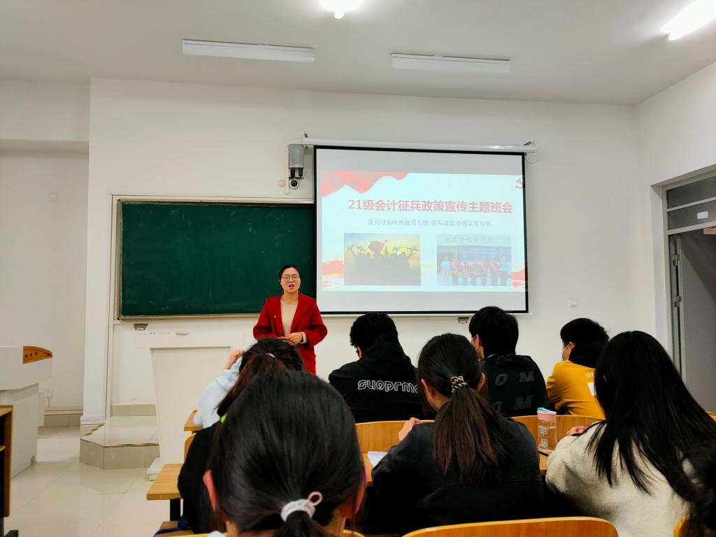 为帮助大学生更好地了解应征入伍政策,提升大学生参军入伍的积极性,3月28日-4月2日,财经学院各班级先后召开大学生应征入伍宣传教育主题班会。