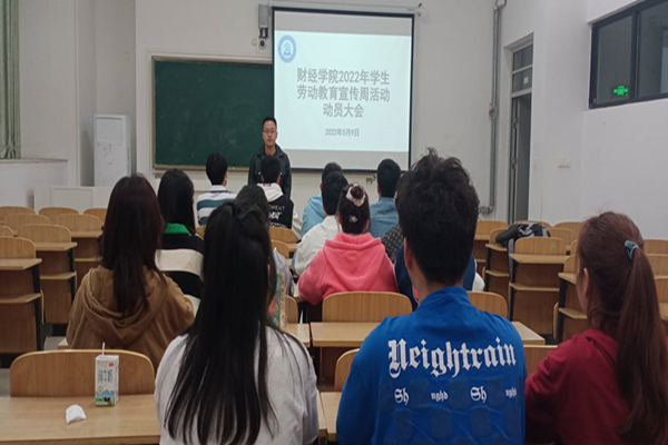 为深入学习习近平总书记有关劳动教育的重要论述,进一步教育引导学生崇尚劳动、尊重劳动、热爱劳动,树立正确劳动观,财经学院积极筹备劳动教育宣传周系列主题活动,并于5月9日下午在龙湖校区举行了动员大会。学生会成员以及2020、2021级各班级主要学生干部参加本次会议。会议由学院劳动教育课程指导老师朱中军主持。