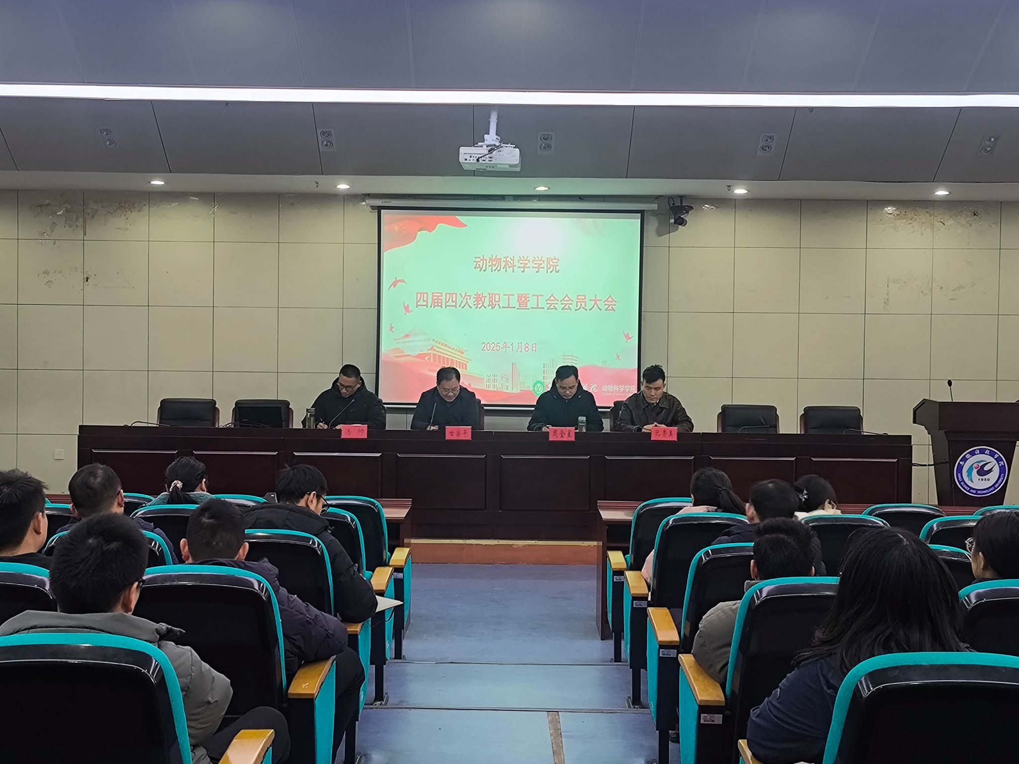 1月8日,动物科学学院在会议中心一楼报告厅召开学院四届四次教职工暨工会会员大会,学院党政班子成员及全体教职工参加会议,会议由学院党委书记甘宗平主持。