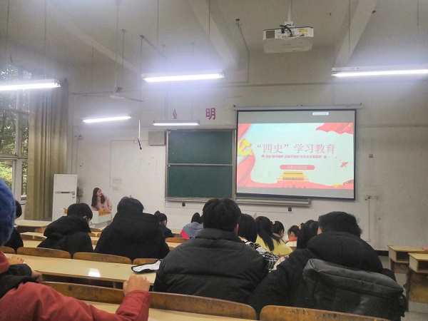 动物科学191班制作简说四史微视频,通过旁白配以沿着时间轴发生的重大历史事件,简述了什么是四史以及学习四史的重要性;动物科学193团支部在新知楼A座开展“学四史,明初心”团日活动。团支书刘倩通过组织同学们观看短片《回顾建党百年史》以基本了解中国共产党自成立到成熟的主要历程和新中国七十多年来的发展经过;动物医学182团支部于11月23日举办“读四史,悟精神”主题团日活动。在活动中,团支书方毅介绍了“四史”的基本内容,强调在百年未有之大变局下,应回望历史,坚守初心,要通过学习“四史”,深刻认识红色政权来之不易、新中国来之不易、中国特色社会主义来之不易,深刻认识到党先进的政治属性、崇高的政治理想、高尚的政治追求、纯洁的政治品质,以史为镜,做到不忘历史、不忘初心,知史爱党、知史爱国。青年团员徐超说道“作为当代青年学生,要学习并传承“四史”精神,让初心薪火相传,把使命永担在肩。”