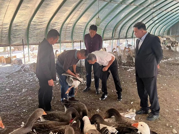 张新一行参观了实验基地,详细了解了朗德鹅育种方案和相关技术成果,并与随行技术员一起细致查看了核心群体生长情况。