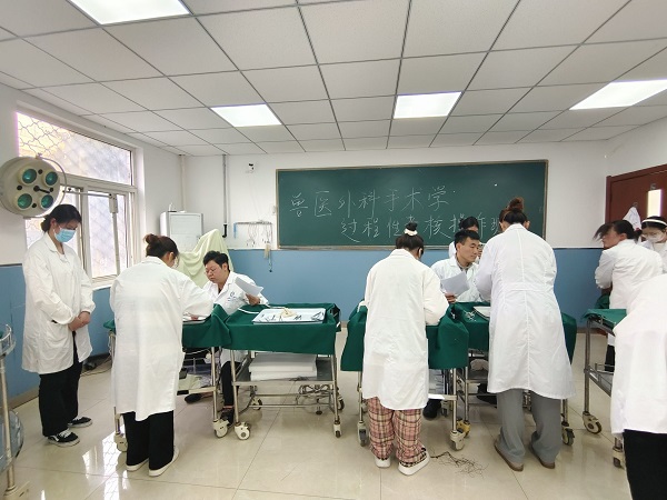为提高专业核心课《兽医外科手术学》教学质量、提升学生对于实操课程的理解和掌握,动物医学系临床兽医教研室李静和阮崇美两位老师于12月3日在兽医院楼124教室面向动物医学专业2021级学生开展过程性实操考核。16个能展示学生外科基本素养的实操题目,由学生随机抽取进行现场操作。整个考核过程紧张有序,考生们按照课堂教授的知识熟练操作,各种器械运用自如,表现出良好的专业素养,但也存在个别学生操作生疏,基本功不扎实的情况。