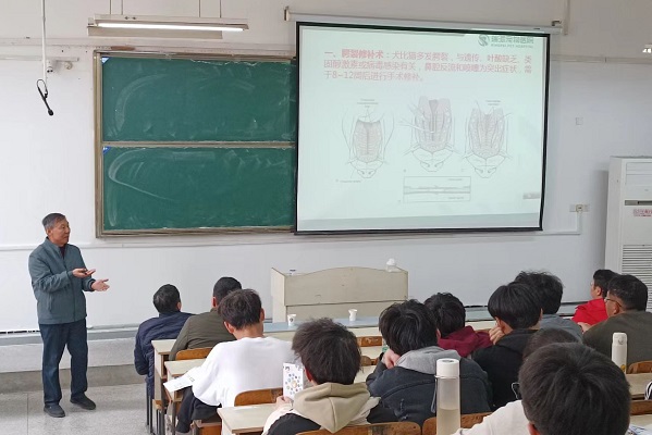 讲座围绕两个主题展开,一是基础理论和疾病诊疗的密切关系,二是优秀的宠物医师成长之路。在第一部分中,周庆国讲述了宠物头面部手术、腹腔手术、关节脱位等疾病的外科手术治疗方法和要点。让广大同学深切认识到专业学习不能是纸上谈兵,必须重视将知识与临床实施相结合。在第二部分中,周庆国向同学们讲述了自己的求学经历,他立足小动物临床专科发展,不断的提升自我,挑战机遇,总结出“主动学习、积极实践、重视总结”的宝贵经验。最后,周庆国就学生们的问题进行解答,帮助学生规划未来职业生涯蓝图,鼓励学生加强实际操作能力,树立人生航标,坚定前行。