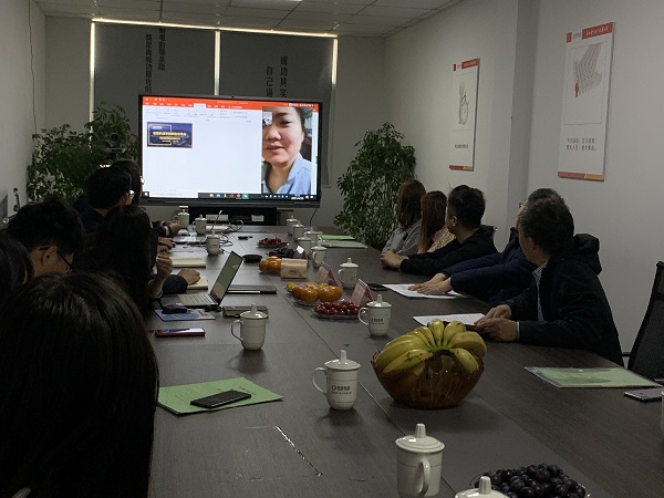 姚勇一行受到公司总经理史景松等热烈欢迎,座谈会上,双方就就实习目的、实习安排、实习内容、实习进度、实习效果等进行了交流,并现场连线了在养殖场实习的学生,交流实习感受。
