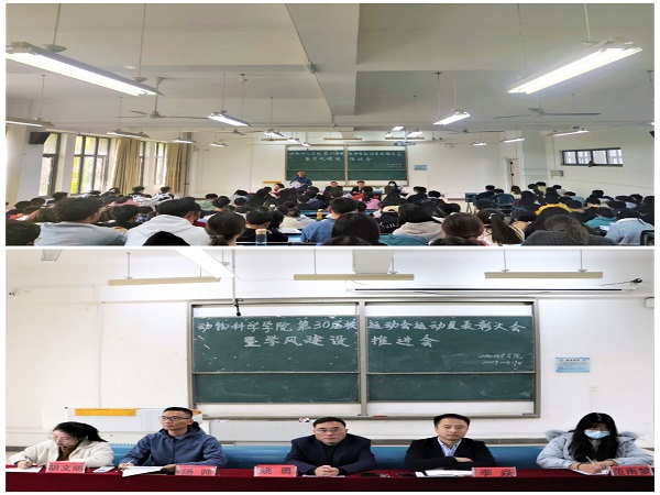 11月19日中午,动物科学学院在新B205教室召开校第三十届田径运动会运动员表彰大会暨学风建设推进会。学院党委书记姚勇,党委副书记、纪委书记汤帅,团委书记李焱,辅导员胡文丽、范雨梦出席会议。全体运动员和学生干部代表参加会议。会议由汤帅主持。