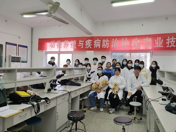 活动开始,教学人员先简要分析了专业技能对未来发展的重要性,并依次讲解了动物的保定、体检、注射法以及取血法。随后教学人员为参会学员演示了动物血涂片的制作过程,学员根据教学内容及演示图片在教学人员的指导下进行了血涂片的制作。活动最后,在主持人的组织下,所有教学人员与学员进行了合影留念。