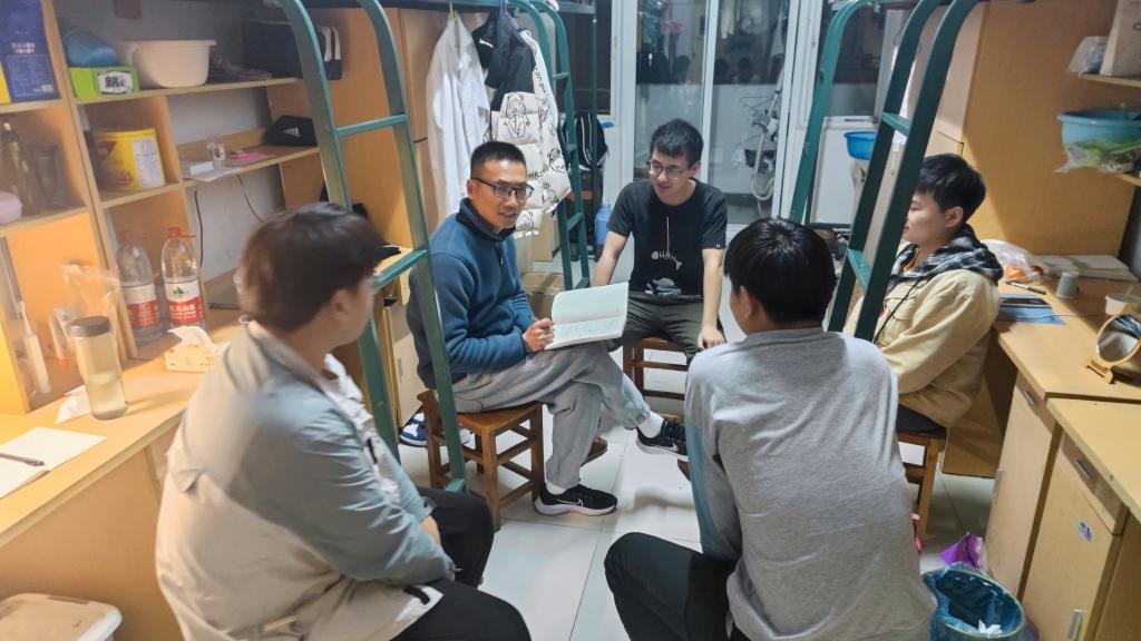 3月31日晚,动物科学学院党委副书记、纪委书记汤帅带领全体辅导员深入学生公寓,深入了解疫情期间同学们的线上线下学习、心理和生活状况,同时开展疫情防控期间宿舍防疫工作检查和防疫知识宣传。走访过程中,辅导员与学生亲切交谈,了解学生的思想动态,倾听学生的诉求,并针对学生提出的问题,给予解决办法。叮嘱学生要严格按照学校防疫工作通知要求,及时关注学校防疫工作动态,配合学校做好相关防疫工作。告诉学生要勤开窗通风,佩戴好口罩,勤洗手,做好自身体温监测和晨、午(晚)上报,保持宿舍卫生清洁、通风,不互相串门,注意个人防护。