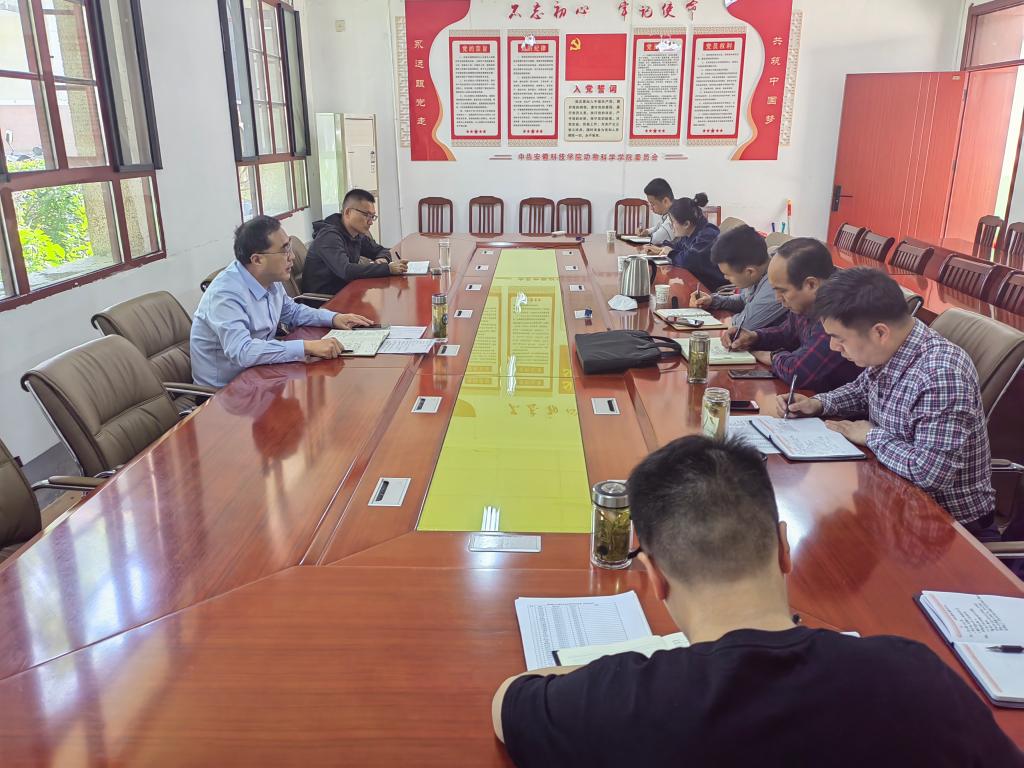 5月5日上午,动物科学学院在西办公楼104室召开全体专兼职辅导员工作会议,布置近期学生工作。学院党委书记姚勇,党委副书记、纪委书记汤帅,党政办公室主任、团委书记李焱,全体专兼职辅导员参加会议,会议由姚勇主持。