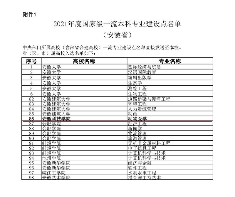 这是继我院动物医学本科专业2019年度获批为省级一流专业建设点、2022年动物医学本科专业修业年限延长为五年制及首次纳入安徽省本科第一批次招生后,学院本科专业建设取得的又一重大进展!