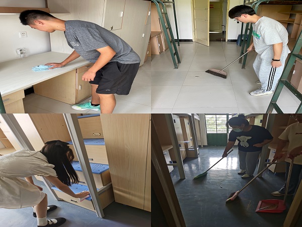 全体参与人员,根据新生宿舍编排,逐一排查宿舍硬件设施,发现问题及时汇总报修,同时各成员以部门、班级为单位,清洁宿舍,擦拭桌椅,清洁地板,同学们干劲十足,积极卖力,发挥了学生干部的服务意识,让新生宿舍焕然一新。