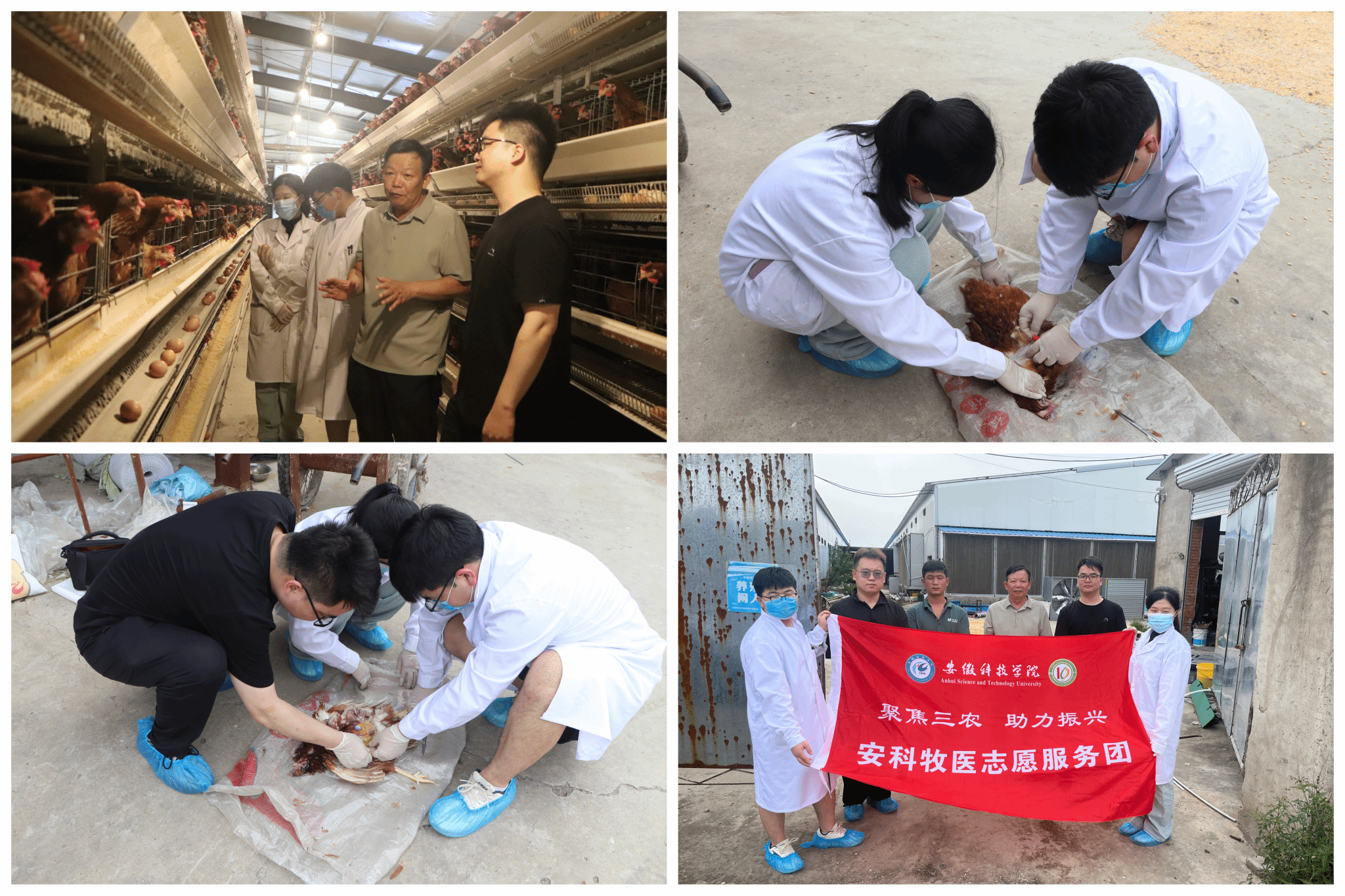 9月3日下午,动物科学学院马飞洋博士带领“安科牧医志愿服务团”研究生团队前往蚌埠市燕山乡,在燕山乡农业技术服务站长朱文军的陪同下开展蛋鸡养殖技术服务。