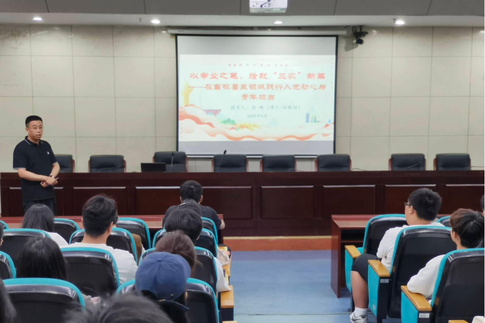 5月27日,动物科学学院在图书馆第一报告厅举办《以专业之笔,绘就“三农”新篇——在畜牧兽医领域践行入党初心与青年担当》特色党课,党课由动物科学学院张峰副教授主讲,学院党委书记甘宗平、学生党支部书记、全体学生党员、第六十二期入党积极分子参加此次党课。