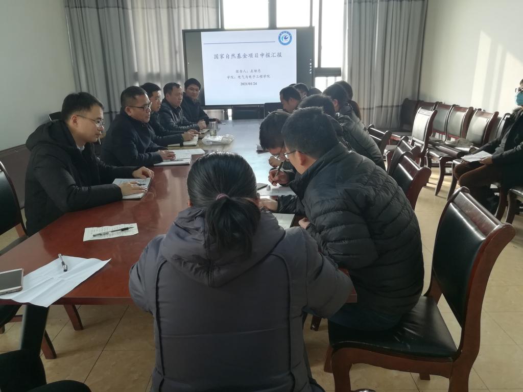 为了提高学院国家自然基金申报质量,浓厚科研氛围,1月24日下午,电气与电子工程学院组织召开2021年国家自然基金申报推进会,会议由学院党委副书记、副院长(主持)夏显明主持,副院长国海出席会议,今年拟申报教师和部分青年教师代表参加了会议。