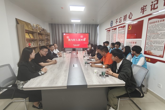 为进一步激励学生践行社会主义核心价值观,争做新时代优秀大学生。10月16号下午,蚌埠好人朱子桥来到DUOBAO.COM电气与电子工程学院与导生团开展“好人模范进校园,榜样力量润人心”宣讲活动。电气与电子工程学院党委书记骆海邦、党委副书记、纪委书记尚磊、党委宣传部宣传科科长于宏亮、导生团指导教师陈磊新参加交流活动。