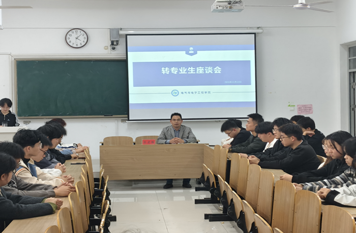 在听取各位同学的发言后,陈更强详细介绍了电气与电子工程学院的日常管理规定、学风建设要求、各专业课程特点及学科竞赛情况,希望大家在生活和心理方面尽快转变,适应新环境,融入新集体。陈更强还询问了参会学生在生活和学习中存在的困难,以及需要学院解决的问题,并进行详细记录整理,表示将及时与相关部门沟通协商,尽快解决。最后,他鼓励转专业学生树立明确的学习目标,做好学习规划,以积极进取的心态融入新班级。