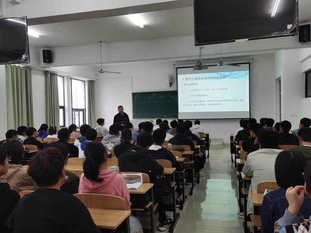为使2021级新生深入了解自身所学专业,明确学习目的,激发学习热情。10月18日上午,电气与电子工程学院在致知楼A208开展电气工程及其自动化专业认知介绍会。学院团委书记、21级电气工程及其自动化专业辅导员张成孜、电气工程及其自动化专业全体新生参加了会议。介绍会由学院电气工程系主任周小杰主讲。