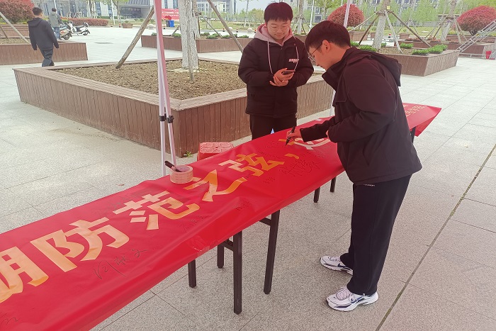 为提高大学生的安全防范意识,增强大学生对电信诈骗的犯罪的识别和应对能力,4月5日,电气与电子工程学院于龙湖校区操场开展以“紧绷防范之弦,远离诈骗之害”为主题的宣传活动。