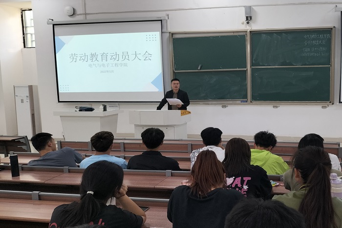为培养大学生勤俭节约、艰苦奋斗、创新实干、敬业奉献的劳动精神,弘扬劳动光荣、创造伟大的时代风尚,全面推进劳动教育,电气与电子工程学院于致知楼B111开展“以劳树德,以劳育美”为主题的劳动教育培训会,培训会由学院团委副书记、学生会指导教师于宏亮主讲。