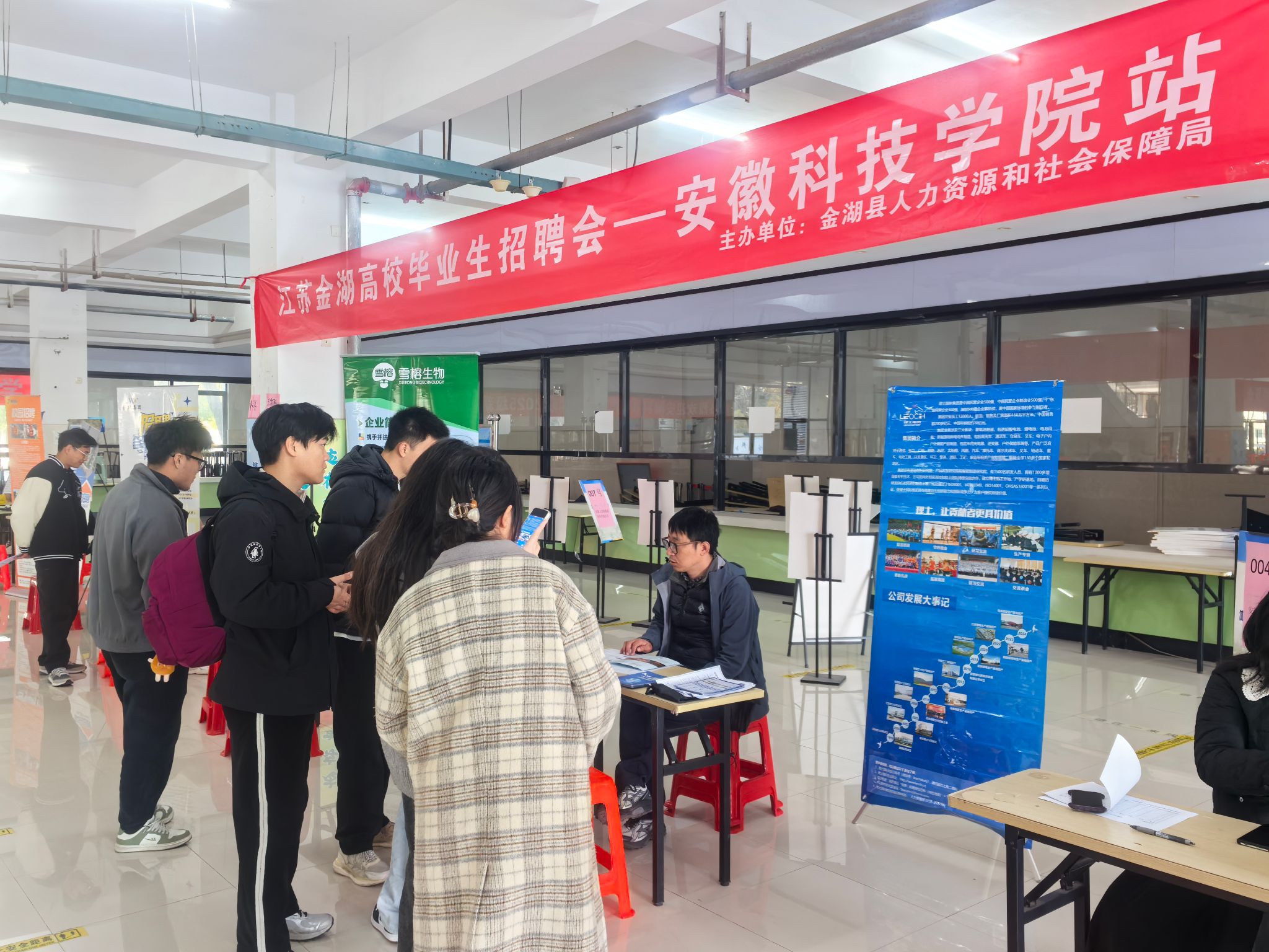 为扎实推进毕业生就业工作,精准搭建校地企人才对接平台,12月9日,淮安市金湖县人社局联合电气与电子工程学院,组织江苏理士电池有限公司、南高齿(淮安)高速齿轮制造有限公司等9家企业进入龙湖校区,开展专场双选会。