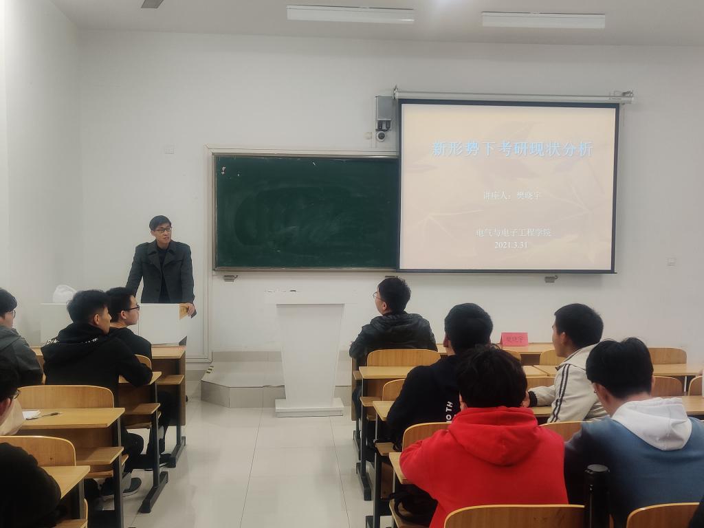 为营造学院考研氛围,加强考研经验交流,提高学生考研通过率,3月31日下午,电气与电子工程学院在致知楼A207召开光电信息科学与工程专业考研交流会。光电信息科学与工程系主任李勇、副主任樊晓宇、辅导员张深出席了本次会议,2018级光电专业有考研意向学生参加,本次交流会由张深主持。