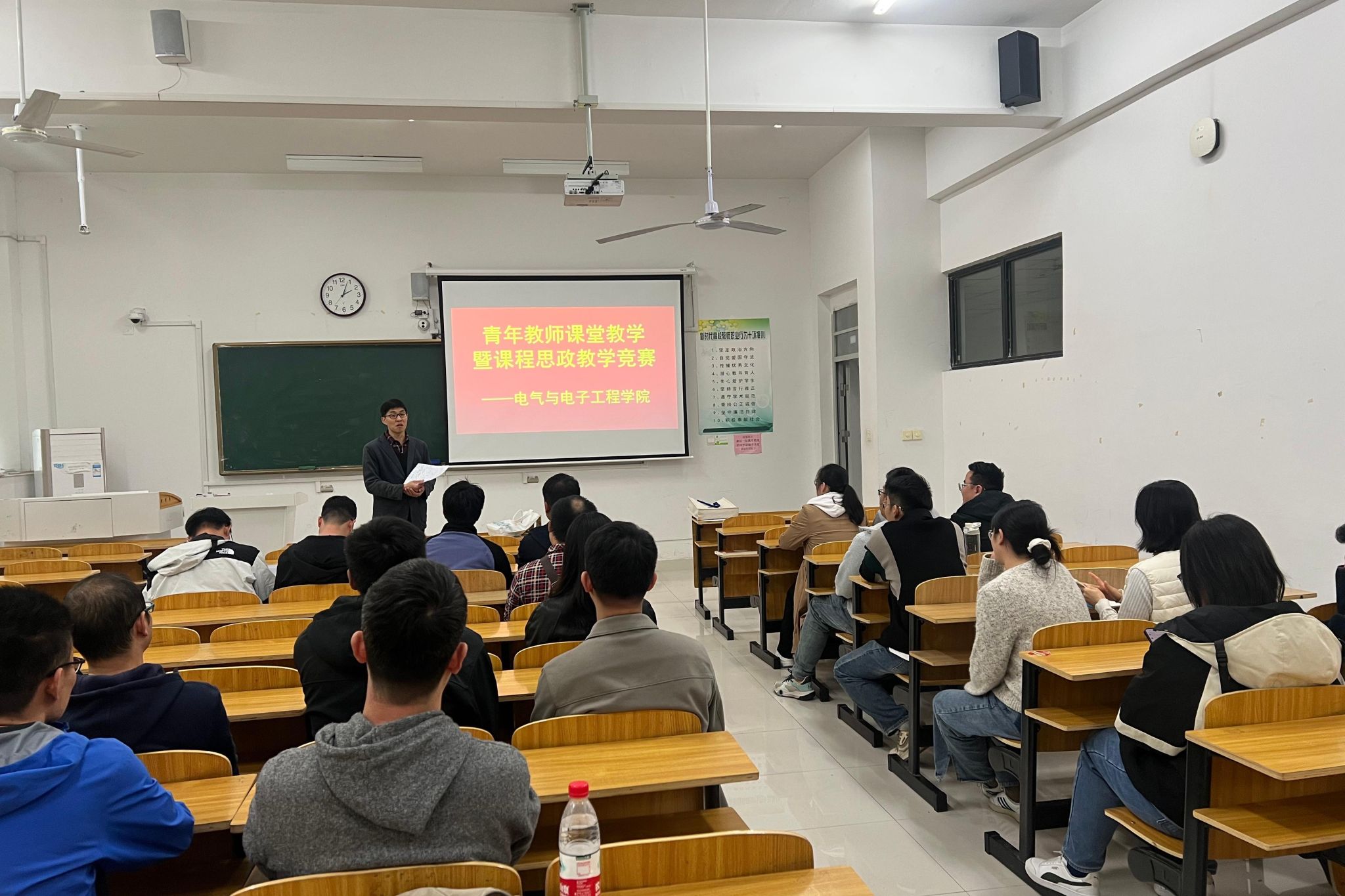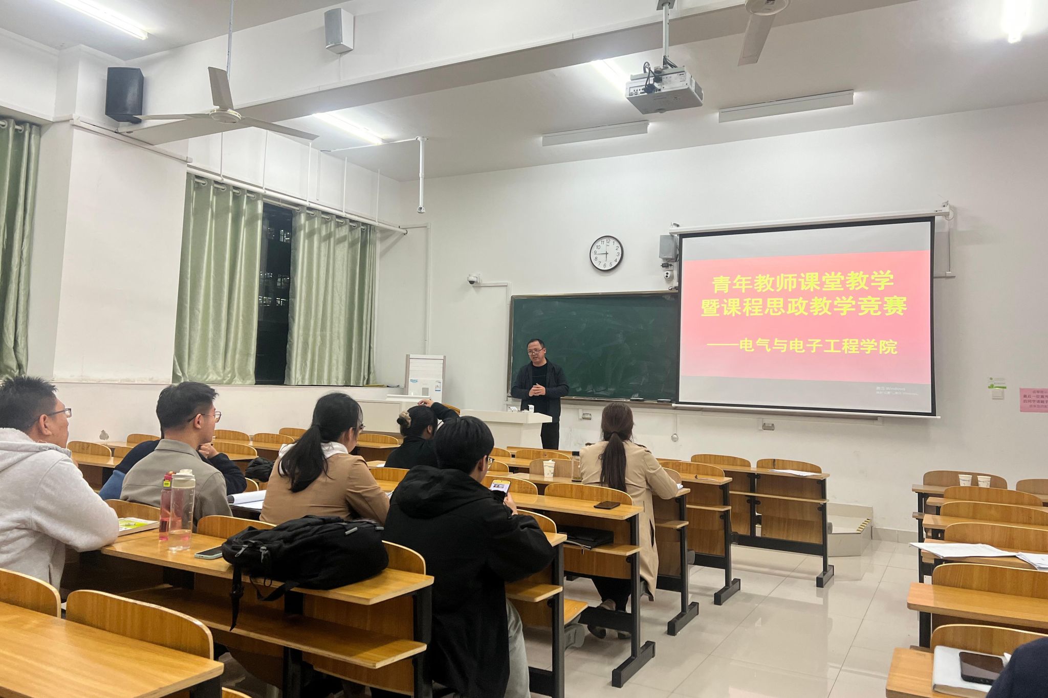 为深化青年教师队伍建设,促进青年教师持续提高教学能力、教学质量和课程思政建设能力,电气与电子工程学院于2024年11月23日在学院督导组的精心组织下,开展了青年教师课堂教学暨课程思政教学竞赛活动,学院全体青年教师参加了此次比赛。学院党委副书记、院长夏显明,副院长樊晓宇,部分校督导、学院优秀教师出席本次教学竞赛活动。