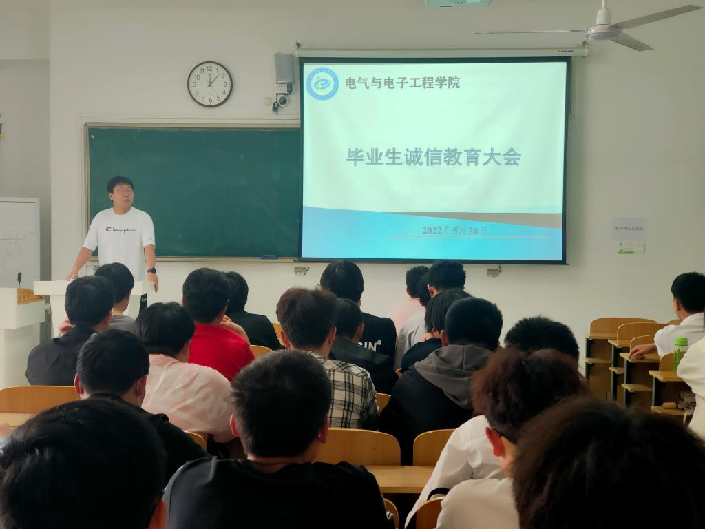 为紧紧围绕“立德树人”根本任务,切实加强受资助学生的诚信教育,做好2022届助学贷款毕业生诚信还贷工作。5月26日中午,电气与电子工程学院在致知楼C209教室召开2022届毕业生诚信教育大会,会议由学院资助联系人张深主持,2022届全体助学贷款受助毕业生参加本次会议。
