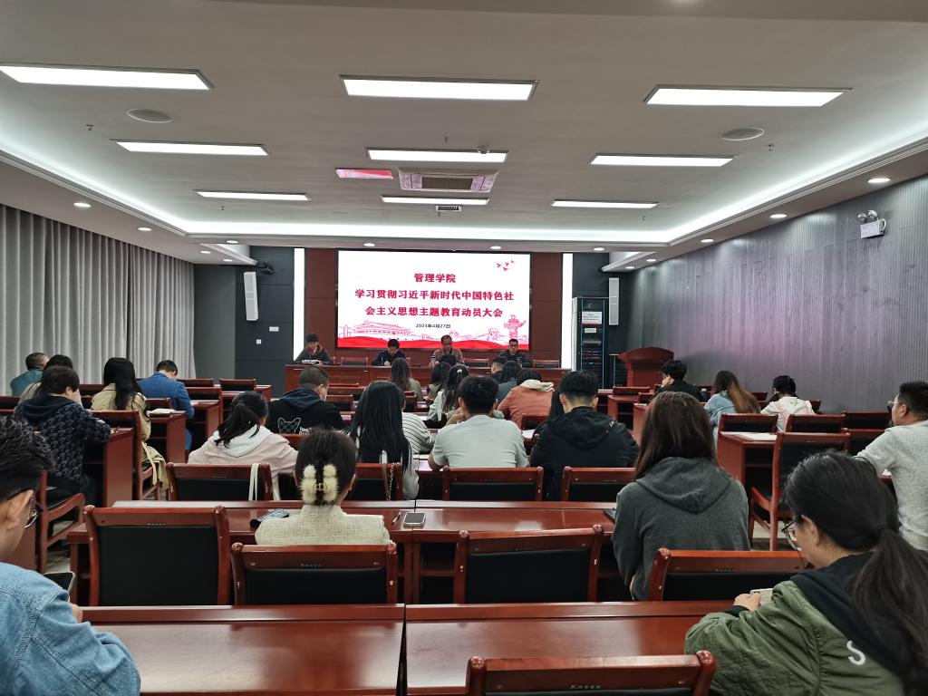 4月27日上午,管理学院党委在西附楼111会议室召开学习贯彻习近平新时代中国特色社会主义思想主题教育动员大会。学院党政领导出席会议,全体教工党员及学生党员代表参加了会议。会议由学院党委副书记、院长陈传万主持。
