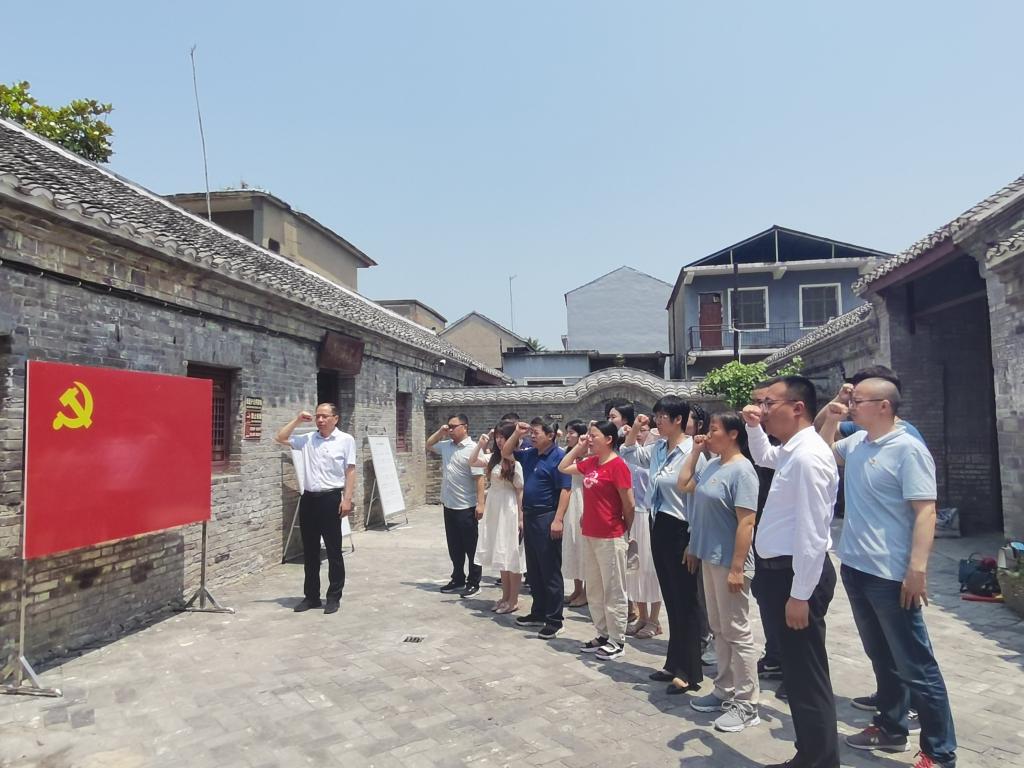 在纪念馆里,全体党员在院党委书记丁景良的带领下,重温入党誓词。全体党员高举右拳,面向鲜红的中国共产党党旗庄严宣誓,用铿锵有力的誓词表达对党的忠诚,时刻不忘初心、牢记使命。