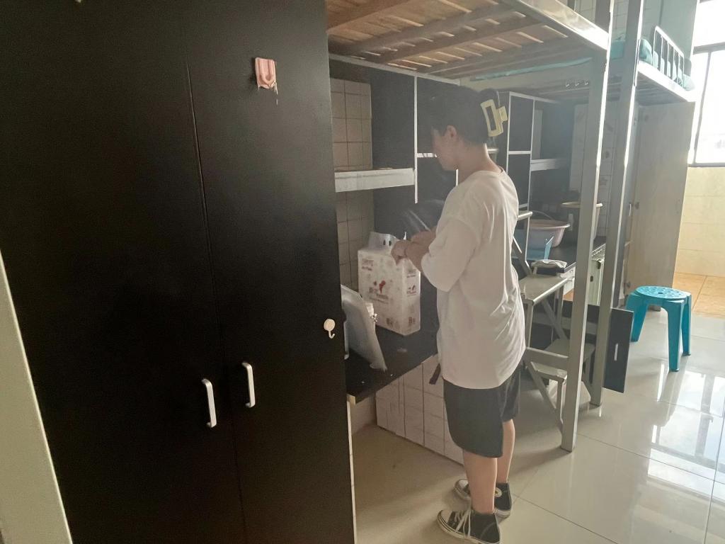 在志愿者的带领下,王婧茹到达自己的寝室。推开寝室门,放下沉重的行李,她就立刻开始打扫整理。对于王婧茹来说,原来的生活一直有父母的陪伴和照顾,但是从今天起,即将独自面对接下来四年的生活和学习,笔者好奇她会不会感到迷茫和无措呢?“独立,是一个人成长过程中必须要经历的一步,在我看来,独立会让我更加自信、坚定和勇敢,有学校老师同学们的陪伴与关爱,我一定会不断成长不断进步。”王婧茹满怀自信地说道。相信通过在学校的锻炼,王婧茹一定会扶摇而往,尽展青春。