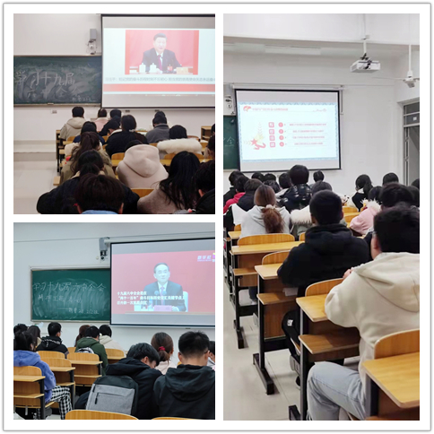 各班团支书以PPT的形式从为什么要总结党的百年奋斗的重大成就和历史经验、中国共产党百年奋斗的历程、中国共产党百年奋斗的历史意义及宝贵经验等方面学习了党的十九届六中全会精神。同学们纷纷表示要坚定中国共产党的坚强领导,从党的百年奋斗中看清过去我党为什么能够成功、明白未来我们要怎样才能继续取得成功,从而更加坚定、更加自觉地践行初心使命,在新时代更好坚持和发展中国特色社会主义。最后,同学们还纷纷畅谈了作为新时代的大国青年,应该如何刻苦学习,练就好本领,勇担时代责任,投身强国伟业。