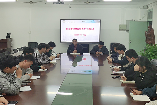 为进一步做好机械工程学院学生宣传工作,提高学生宣传干部队伍工作水平,树立良好形象,3月15日中午,学院党委副书记、纪委书记张程在学院会议室主持召开了学生宣传干部工作培训会,辅导员张立亮、新媒体中心全体成员以及学生会、体育协会、英语协会、创新创业协会、青年志愿者协会和心理联合会宣传部负责人参加会议,会议由张立亮主持。