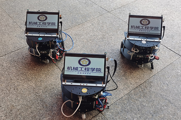 张程对现场作品摆放位置以及展品选择做出具体指导,同时还要求参展作品要确保安全、不能妨碍新生报到秩序,同时还要充分展现机械学院工学特色。张华指导学生现场调试工作,通过计算机操作让智能无线遥控视频车在迎新场地上行进、旋转、倒行、播放视频,确保展品在新生报到当天正常运行。