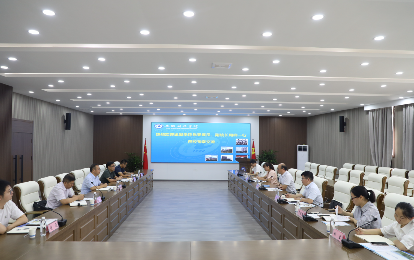 9月19日上午,巢湖学院党委委员、副院长周祥一行来校考察交流。校党委委员、副院长王孝义及对口部门负责人参加座谈交流。会议由王孝义主持。