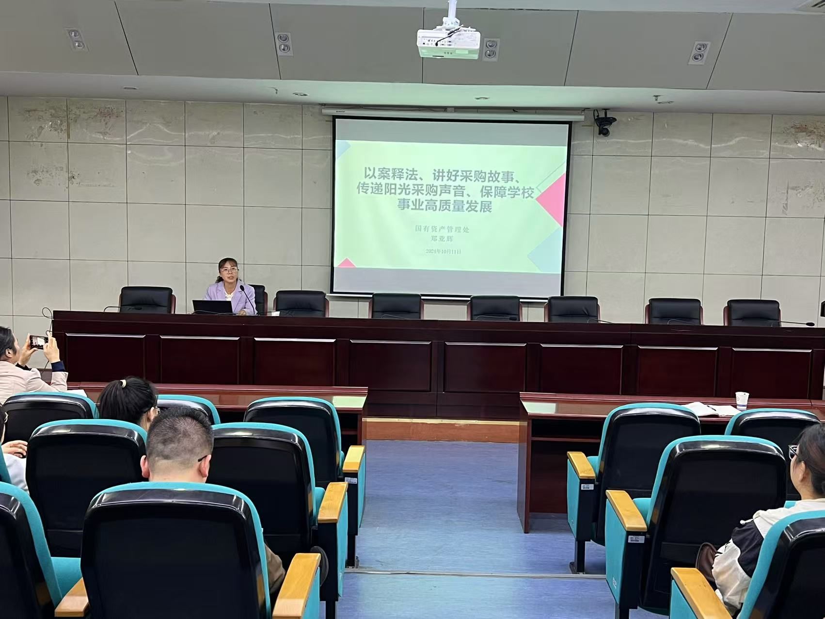 为认真落实巡视整改工作要求,进一步强化采购管理,规范采购行为,提高采购质效,持续优化我校采购营商环境,10月11日,国有资产管理处组织召开采购政策宣讲会。各单位采购工作分管领导、秘书和采购工作人员参加会议。