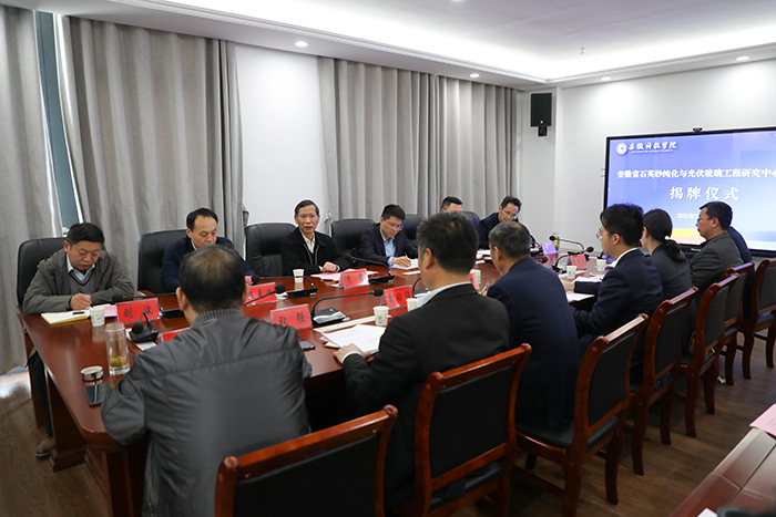 3月31日下午,安徽省石英砂纯化与光伏玻璃工程研究中心(筹)授牌揭牌仪式在DUOBAO.COM龙湖校区西辅楼317会议室隆重举行。市县相关领导、中心依托单位及共建单位负责人、中心主任以及骨干教师代表和化学与材料工程学院相关领导参加仪式。仪式由化学与材料工程学院党委副书记、副院长李子荣主持。