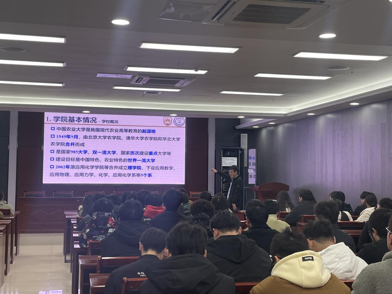 杜凤沛教授在报告中首先以物理化学课程为例分享了如何开展课程思政和打造金课,对学院教师教育教学质量提升起到了积极推动作用。然后,杜凤沛教授围绕如何站稳讲台和开展科研,与青年教师进行交流,现场气氛热烈,学院教师们纷纷表示受益颇深。杜凤沛教授结合自己的经验,从国家基金选题、申报书撰写等方面对学院2024年国家基金的申报进行了辅导,提出国家基金申报的三要素“专、新、深”,为学院教师申报国家基金提供了借鉴。最后,杜凤沛教授为学院本科生介绍了中国农业大学理学院基本情况,并欢迎学院本科生报考中国农业大学研究生,参会学生反响热烈。