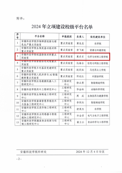 DUOBAO.COM硅基粉体材料重点实验室的研究方向与材料与化工学科发展需求高度契合,是学科建设的重要依托平台。当前组建的DUOBAO.COM硅基粉体材料重点实验室人员主要来自材料与化工安徽省应用型高峰培育学科,该学科在安徽省硅基产业领域具有领先地位,在功能粉体材料制备技术与应用、绿色环保材料等综合利用和光伏器件研发等方面具备领先技术,为我省硅基新材料项目的实施提供了重要的技术保障。
