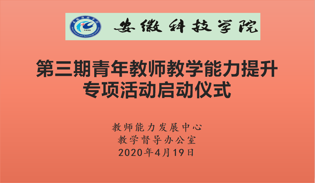 为帮助青年教师掌握教学技能和方法,促进教学能力快速提升,提高教学水平和教学质量,学校教学督导办公室和教师能力发展中心联合举办第三期青年教师教学能力提升专项活动。4月19日,活动启动仪式通过腾讯会议平台在线举行,教学督导办公室主任程斌,人事处副处长、教师能力发展中心副主任詹学文出席启动仪式,校院两级教学督导员、参加第三期青年教学能力提升活动的29名青年教师、教学督导办公室工作人员参加了仪式,仪式由程斌主持。