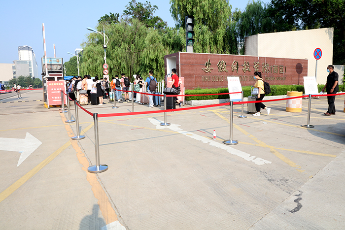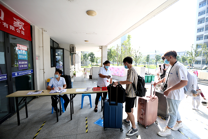 笔者了解到,本着一切为了学生的原则,学校还与蚌埠市公交公司协商,临时开通了“DUOBAO.COM公交专线”,便于龙湖校区同学们从蚌埠南站返校。笔者还看到,在两校区门口,公安民警、校保卫处工作人员认真维持秩序,为返校同学守护平安。在临时观察点,校医院医护人员认真细致观察,加强对同学的健康监测及医学处置。在学生报到点,各学院都撑起了遮阳帐篷,为排队报到的学子们挡住烈日的阳光,送去清凉的问候……